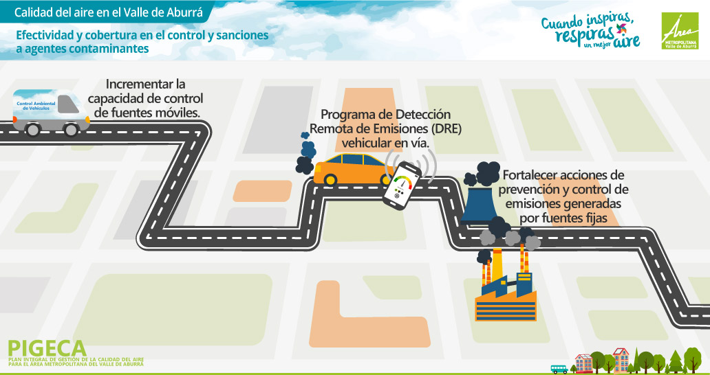 Además, se espera implementar un programa pedagógico y permanente de detección remota de emisiones, capaz de medir en tiempo real las emisiones de una gran cantidad de vehículos sin necesidad de que los vehículos se detengan. Este mecanismo ayuda al reforzamiento de la vigilancia y a la generación de grandes volúmenes de información para la mejora continua de regulaciones y medidas.
